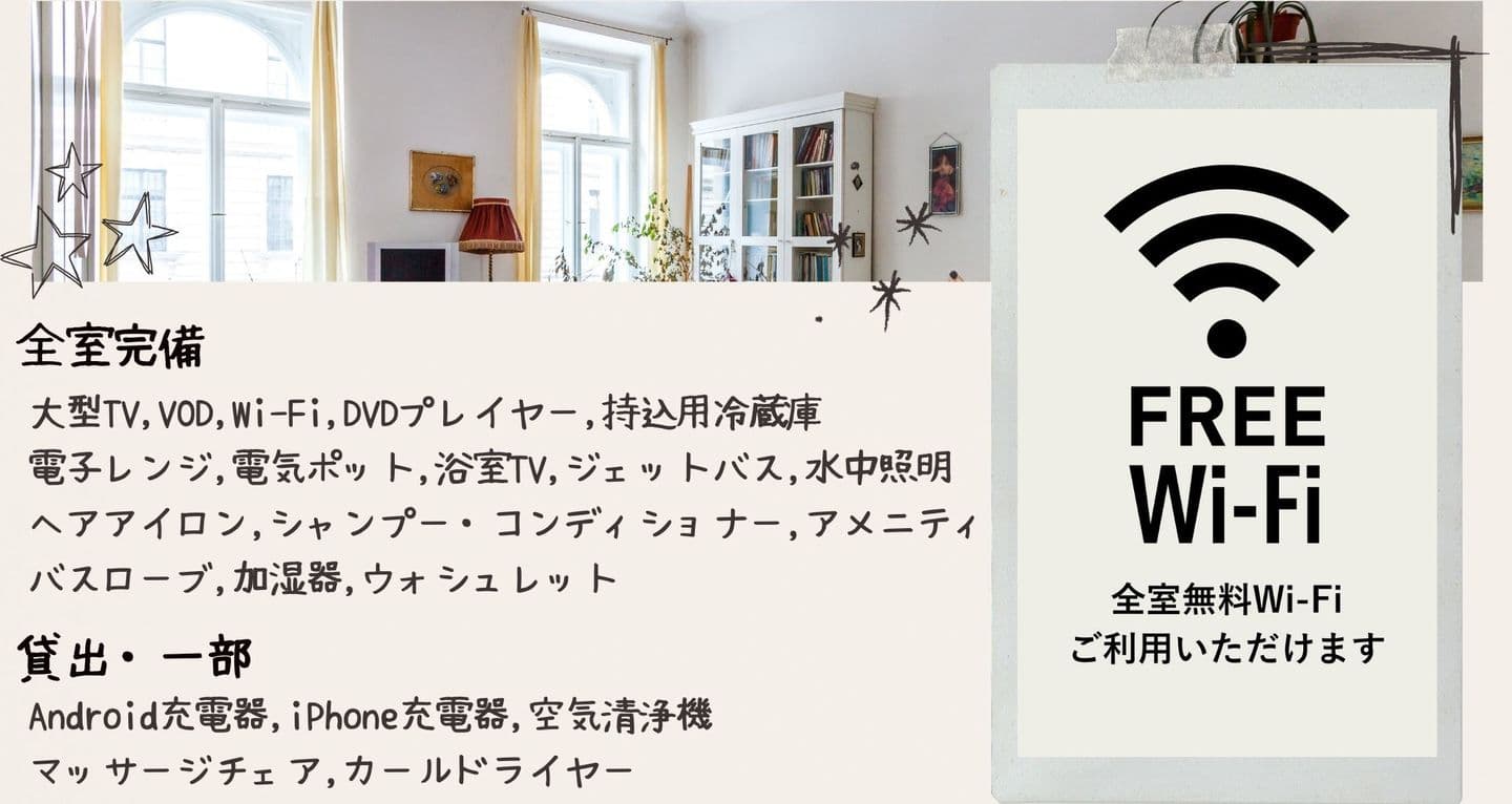 持込用冷蔵庫・電子レンジ・空気清浄機完備で長時間のご利用にも最適。202号室、203号室、301号室、303号室の4部屋は禁煙ルームです。同性同士のご利用もOKです。